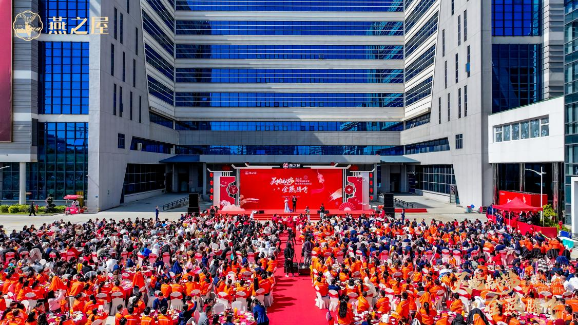 振奮人心的頒獎(jiǎng)典禮定格榮耀時(shí)刻,隨之開啟的千人午宴蔓延著佳節(jié)的喜慶與團(tuán)聚的溫馨。開席前,燕之屋執(zhí)行董事兼總裁李有泉登臺致祝酒詞,他向獲得榮譽(yù)的優(yōu)秀員工和團(tuán)隊(duì)表示祝賀,同時(shí)也向所有堅(jiān)韌不拔、努力付出、圓滿完成各項(xiàng)要求和目標(biāo)的燕之屋人表示感謝。他說道:“未來的一年以及數(shù)年,我們要大膽地?fù)肀ё兓?,要自我變革,在變革?dāng)中找到燕之屋新的發(fā)展機(jī)會(huì)。在2025年,我希望每一位燕之屋人都能成為一個(gè)隨時(shí)代、隨環(huán)境而變化的進(jìn)化者。”隨后,他與現(xiàn)場所有人共同舉杯,敬過往、敬未來,為燕之屋的美好明天干杯。