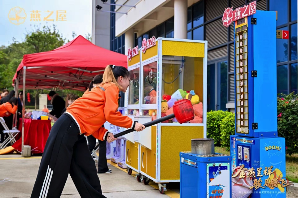 隨后,元宵喜樂游園會(huì)的帷幕悄然拉開,游園現(xiàn)場(chǎng)設(shè)計(jì)了五大游戲環(huán)節(jié),從傳統(tǒng)經(jīng)典的錘丸、竹馬跳欄,到現(xiàn)代化的記憶翻轉(zhuǎn)、投籃機(jī)、接棒機(jī),融匯古今,令人意猶未盡。別具匠心的非遺傳統(tǒng)漢服簪花體驗(yàn),與大力錘機(jī)、娃娃機(jī)、彈彈珠機(jī)、滾輪印章等趣味互動(dòng),更添團(tuán)圓喜氣。大家在打卡互動(dòng)中收獲歡笑、凝聚情誼,暢享喜樂元宵。
